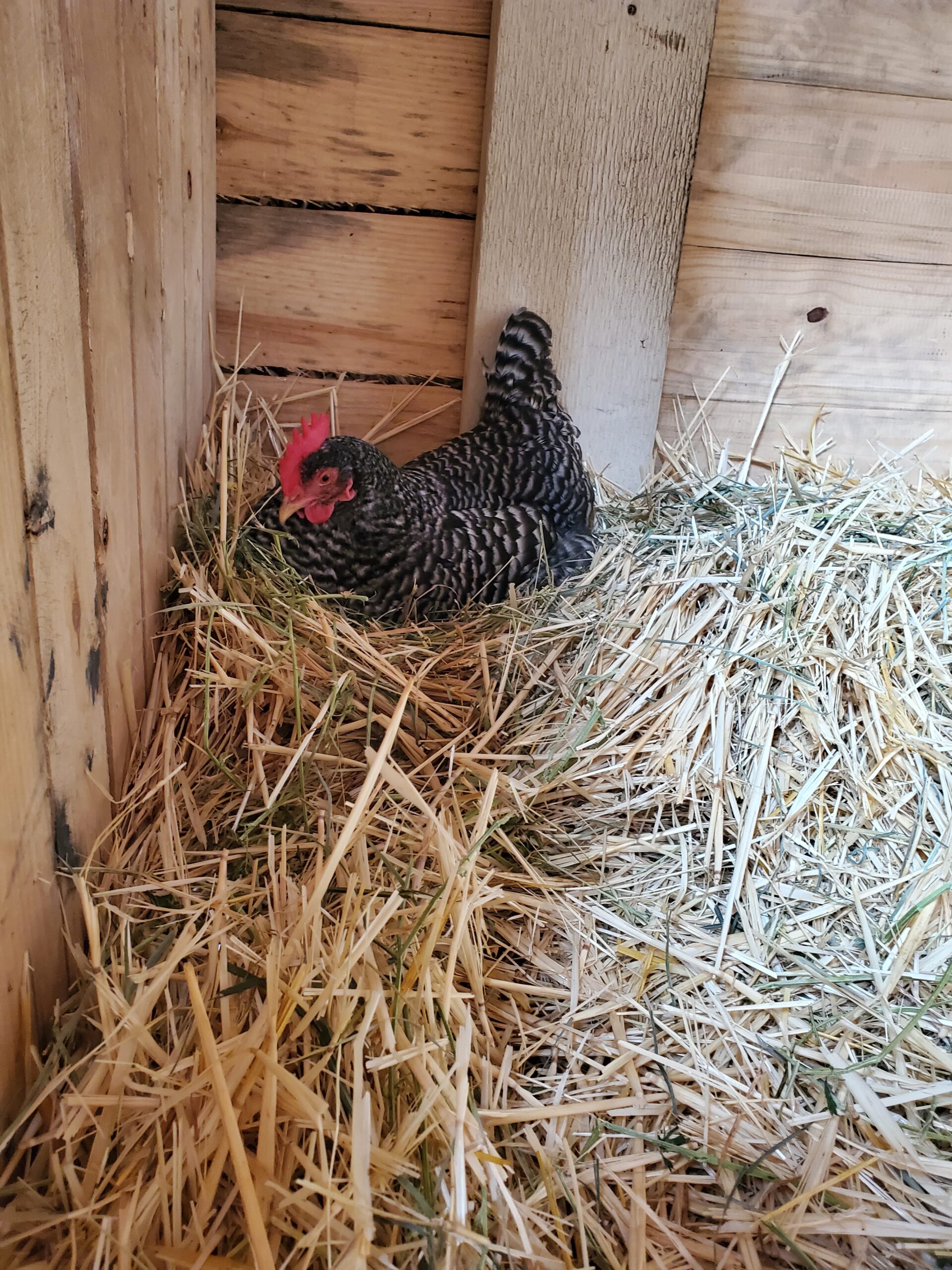 Our original two hens, a Buff Orpington named Goldy and a Barred Rock named Midnight, were our introduction into this lifestyle. They are 8 years old and enjoying their retirement here. Our roosters think they are in charge, but the truth is these girls keep them in line.